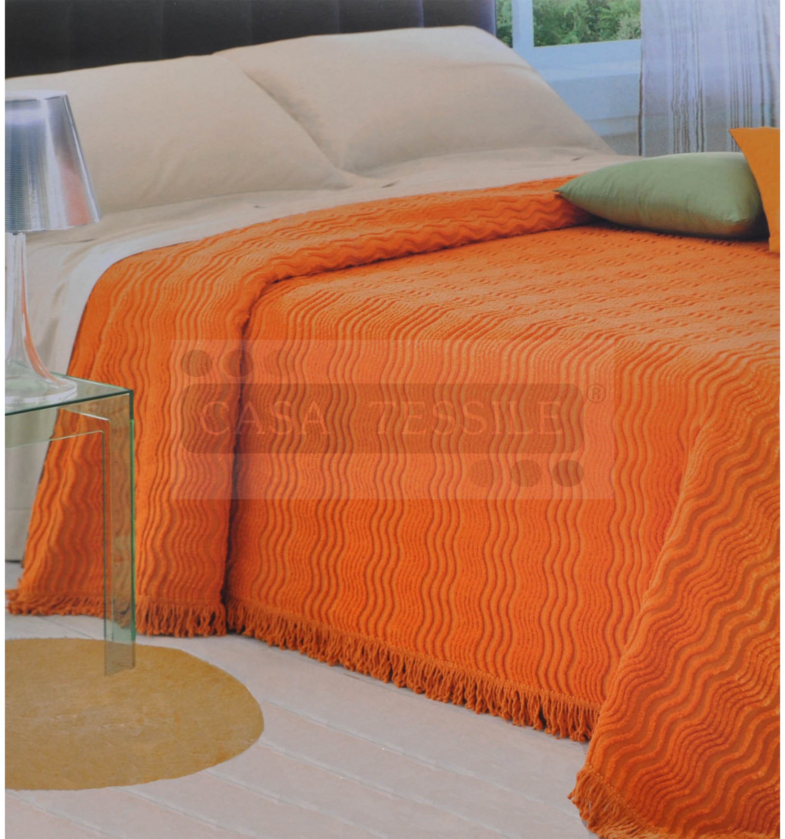 Bettüberwurf aus weichem Chenillegarn mit samtigen Wellen Ton in Ton.