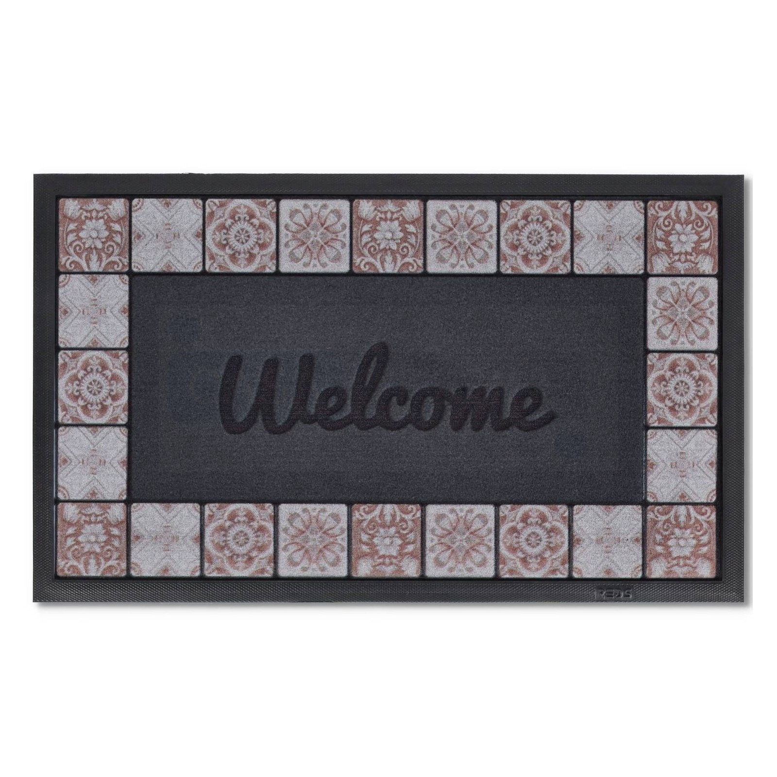MAJESTIC DOORMAT Nadelgestanzt in leuchtenden Farben bedruckt und mit Intarsien geformt, die einen Reliefeffekt erzeugen, mit einer thermoplastischen Gummisohle, die Körper und Festigkeit mit rutschfestem Effekt verleiht. Ausgestattet mit einer gummierten Kante, die über den gesamten Umfang abgeschrägt ist, um stolpersicher zu sein..