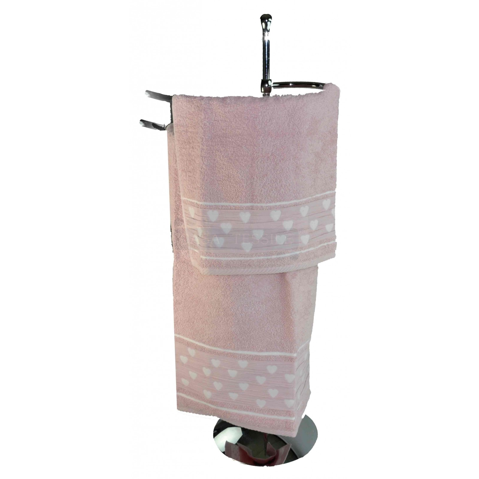 100 % Baumwollhandtücher vom guten klassischen Gewicht erstellt durch die Verarbeitung Schwamm Ricciolini und garniert mit einem unregelmäßigen plissierten Stoff auf dem Cuorini in Ton mit dem Schwamm bestickt sind..