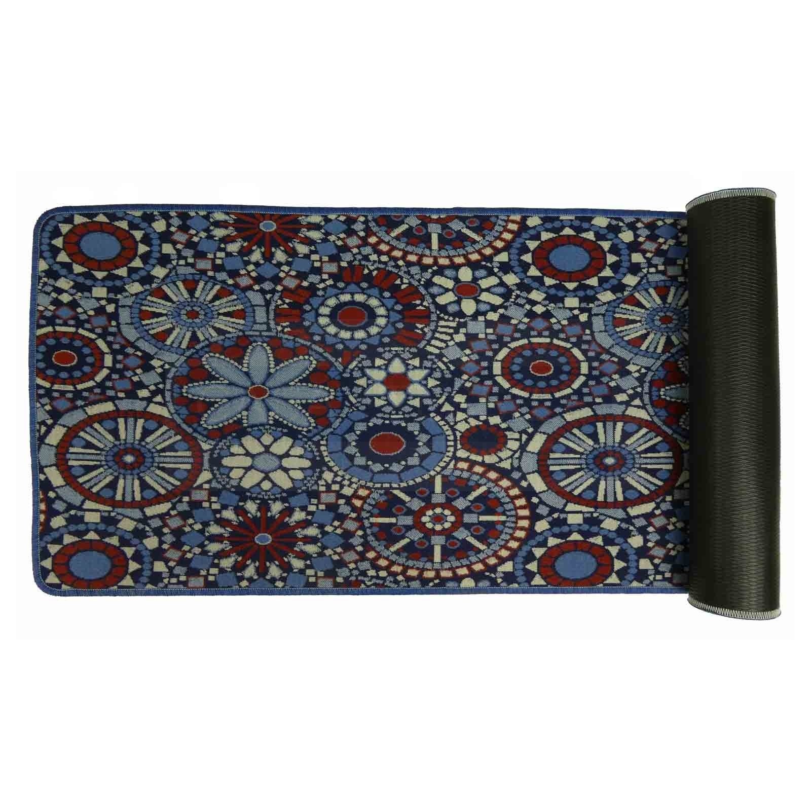 Ein Teppich mit hellen Farben, der an hübsche Mosaike erinnert, die Sie in jedem Raum des Hauses verwenden können, ideal als Waschbeckenteppich, aber auch im Badezimmer oder am Eingang des Hauses und mit dem maßgeschneiderten können Sie die Länge wählen, die Sie bevorzugen..