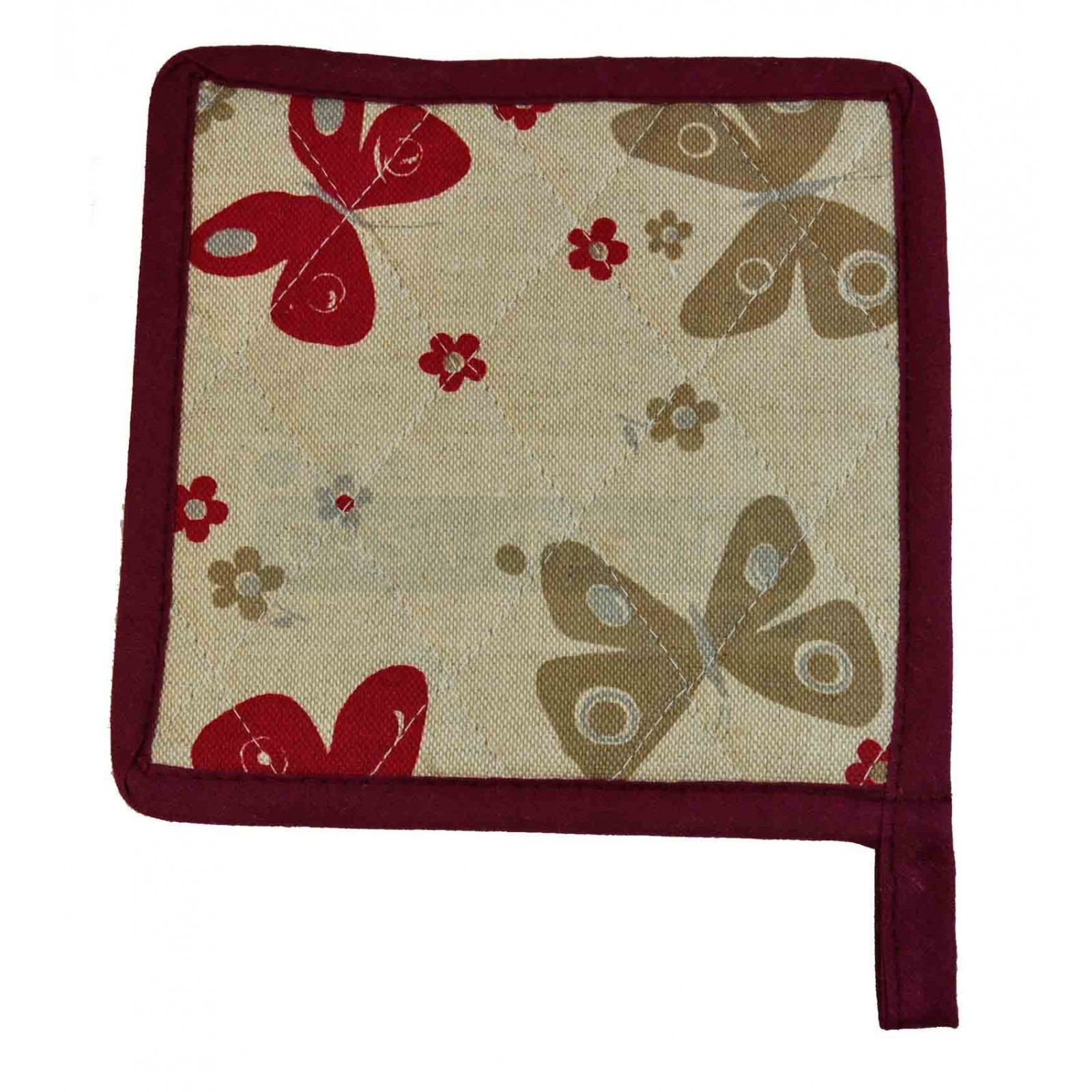 Two layers of this fabric contain thin padding Center to afford a good grip but necessary to avoid burning yourself. The whole is quilted and finished with a sling in solid press edges 4 sides and form on a corner the catch in order to comfortably hang ...
