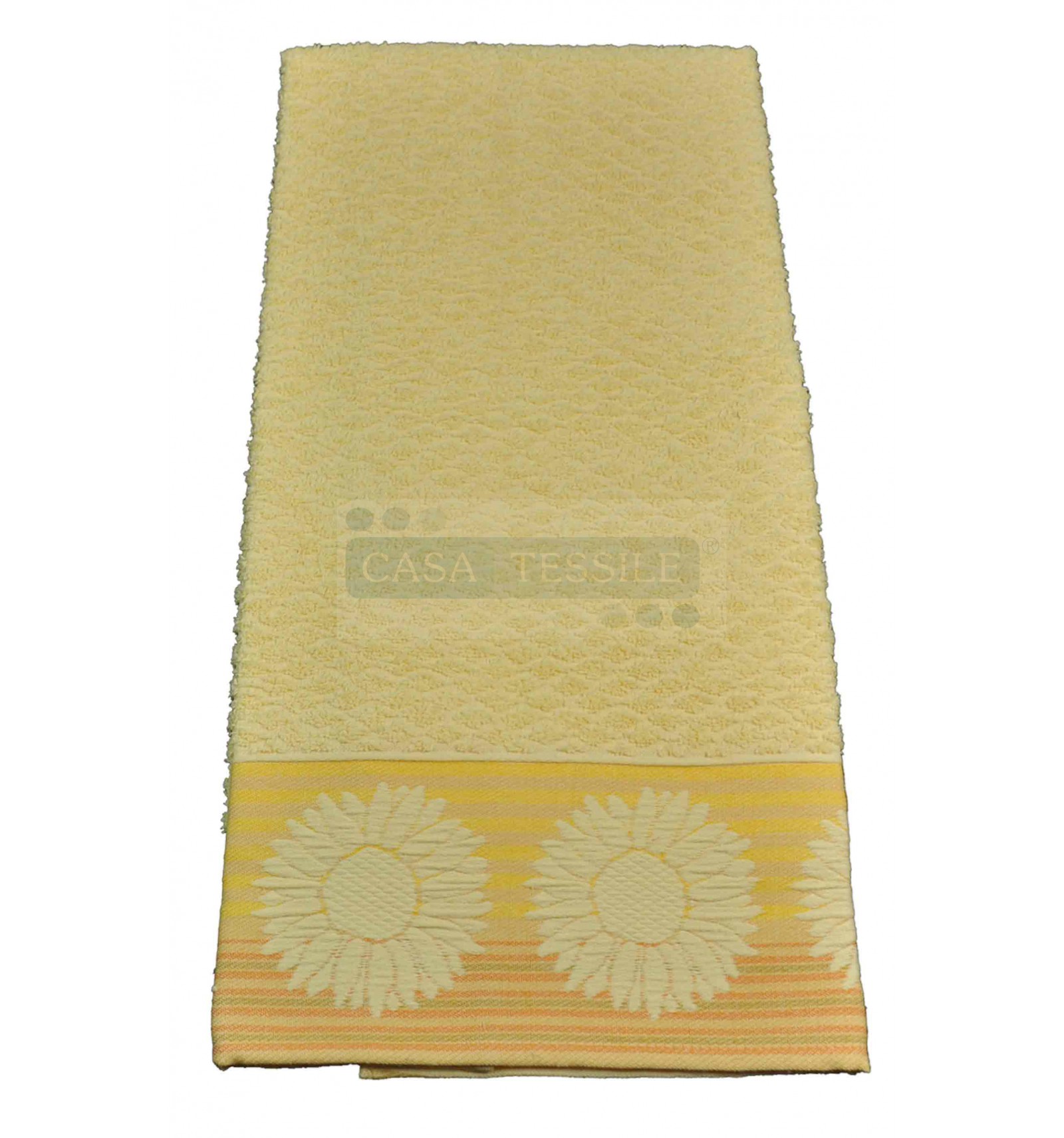 On the bottom of the sheet, a colorful striped waistband with sunflowers in rilievocreati directly in weaving that resuming the tint of the sponge..