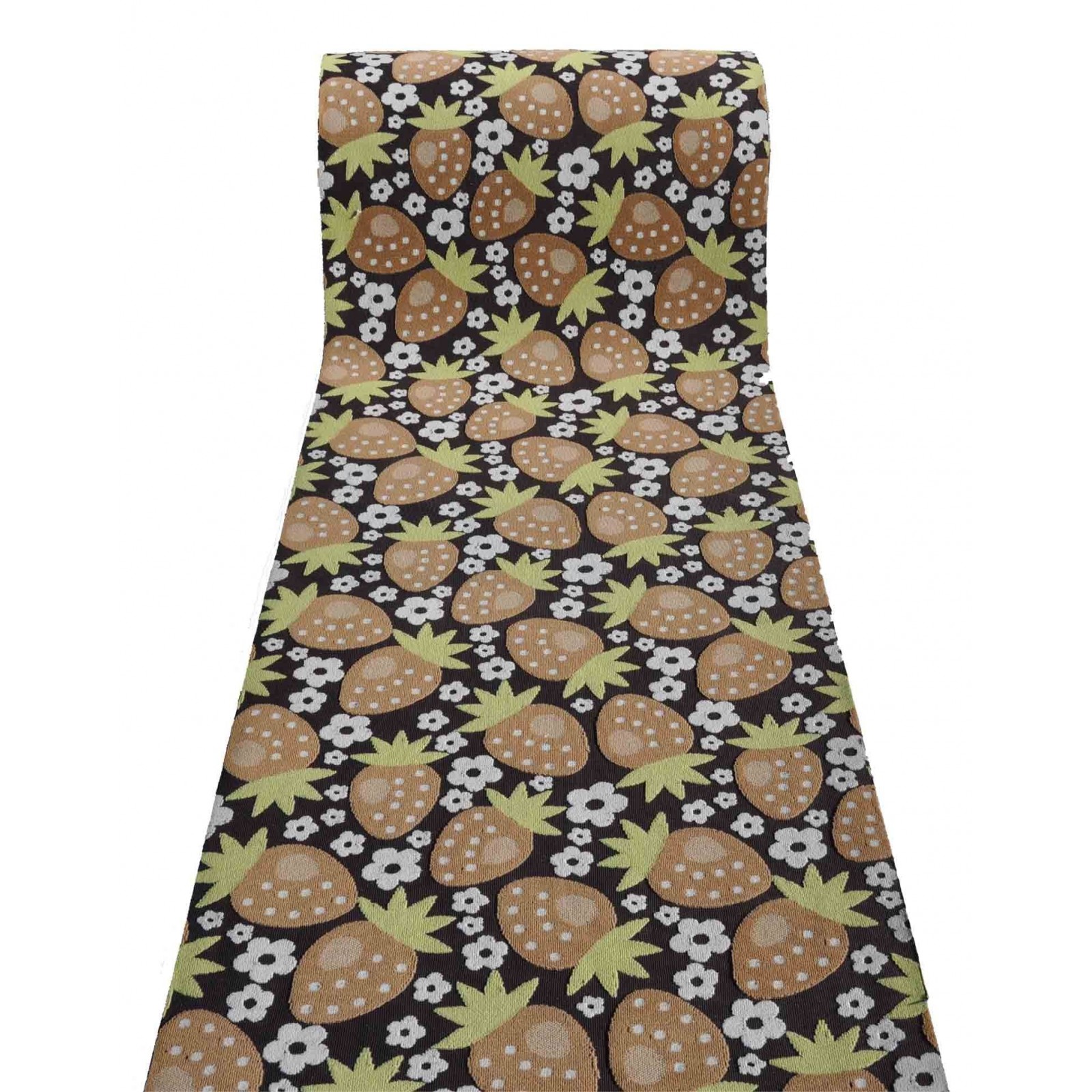 Flowers and strawberries are embossed with a pleasant velvet touch effect giving the two-dimensional movement carpet.