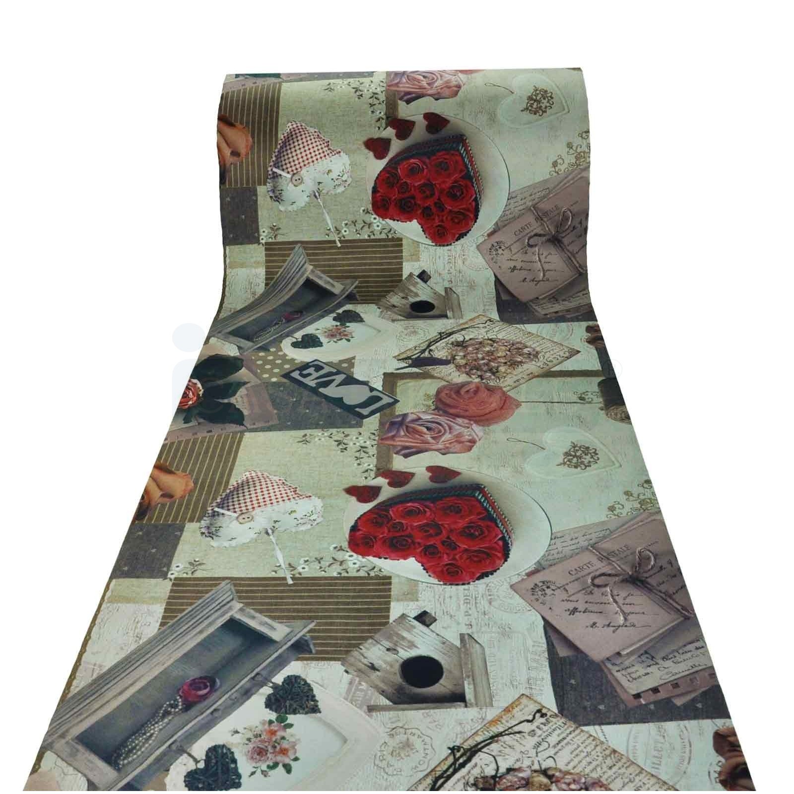 A patchwork basis on which are lying hearts, roses and clearly defined contours cards due to the high quality of digital printing.