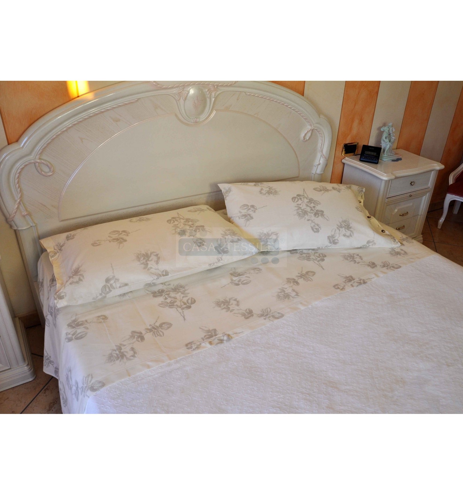 Sets of bed linen cotton in pure with neutral colour printing in variantenaturale.