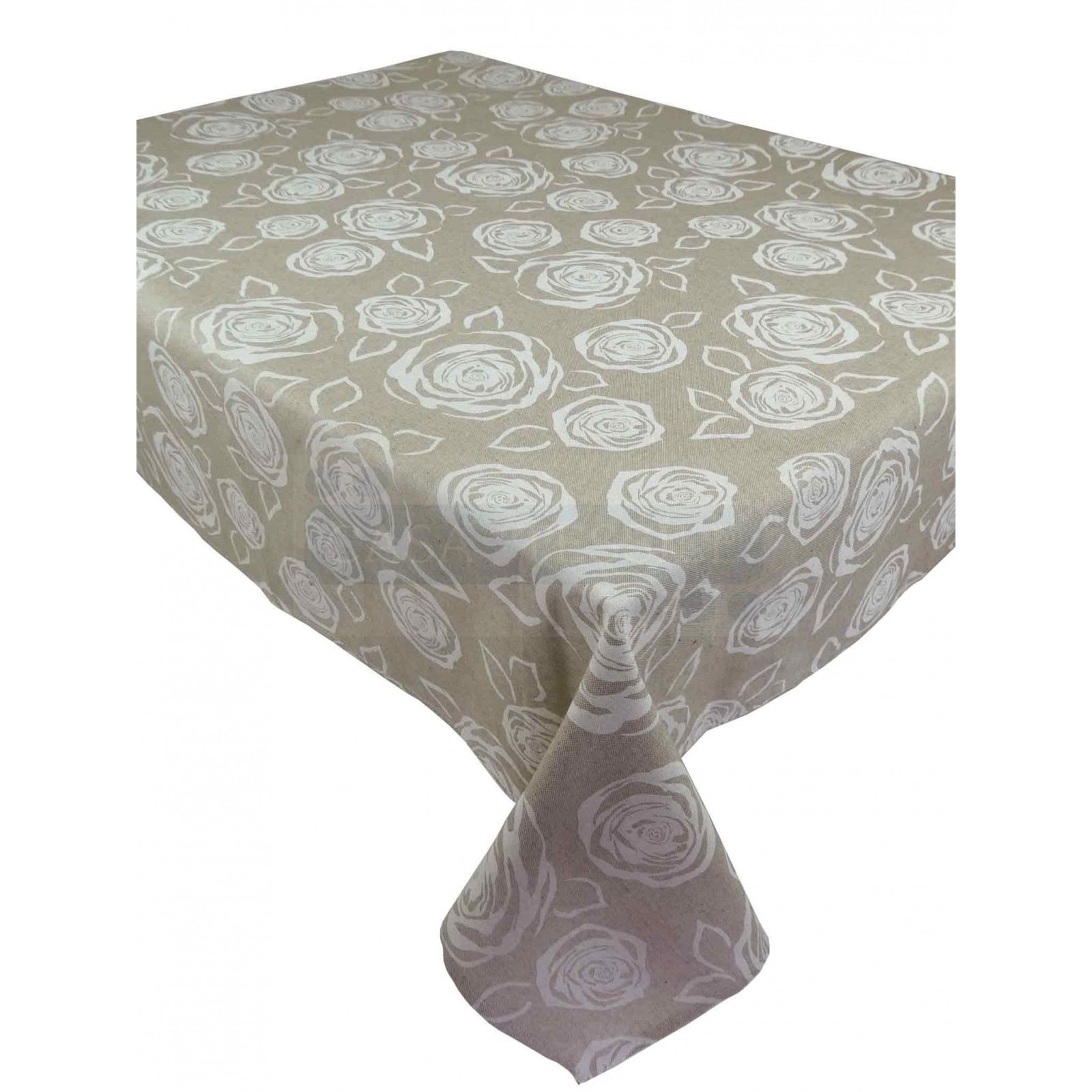 A cotton canvas with a consistent hand and natural coloring reminiscent of hemp, enriched by a clear print with stylized roses of various sizes that dress all over your dining table..