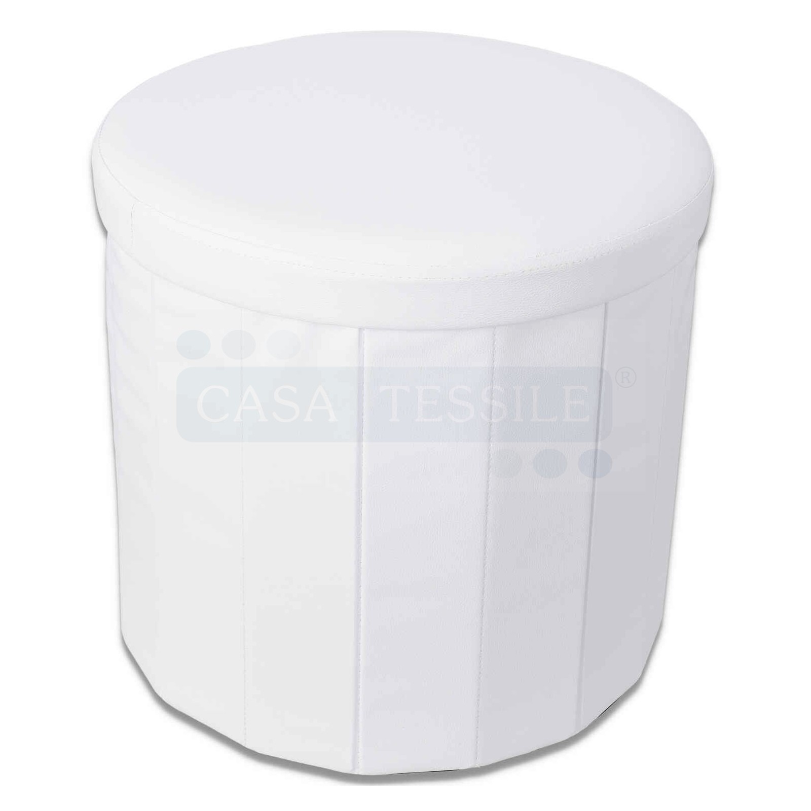 A practical round pouf that can be used anywhere in the house, in solid color in eco-leather.