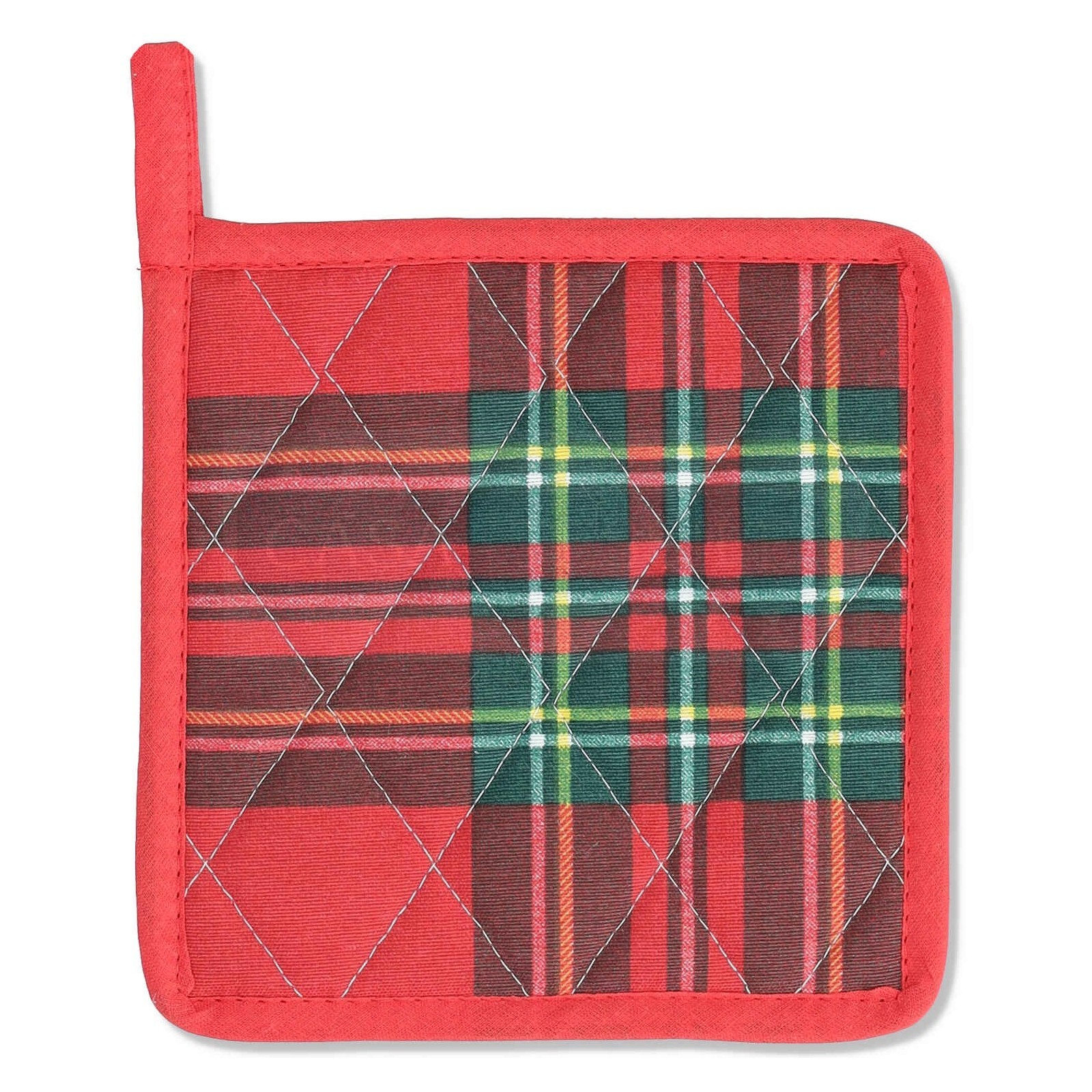 Dos capas de este tejido encierran un acolchado fino en el centro para permitirle un buen agarre pero necesario para evitar quemarlo. Todo está acolchado y acabado con un tinte de la impresión que dirige los 4 lados y forma en una esquina el gancho para poder colgarlo cómodamente.