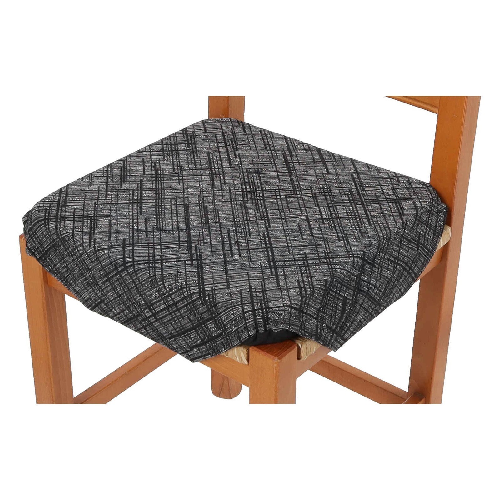 CON ALAS: El cojín de la funda de la silla se caracteriza por alas triangulares que envuelven la silla atando con 4 bandas elásticas debajo del asiento de una manera práctica y sencilla permitiéndote tener un cojín firme y siempre en orden..