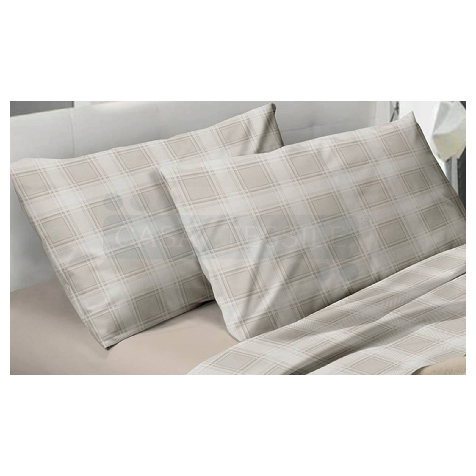 La ropa de cama completa incluye sábanas debajo con esquinas y elásticos, en la parte superior con pliegue y fundas de almohada con rótula para bloquear la almohada. El número de fundas de almohada cambia según el tamaño del traje, son individuales para el tamaño 1 cuadrado y 1 cuadrado y medio y doble en el doble.