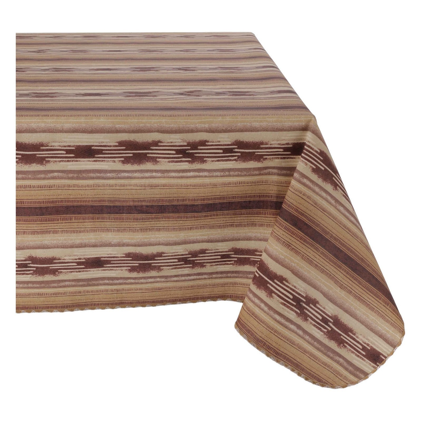 Mantel en tejido de algodón plastificado con colores brillantes, rayado y de atractivo étnico.