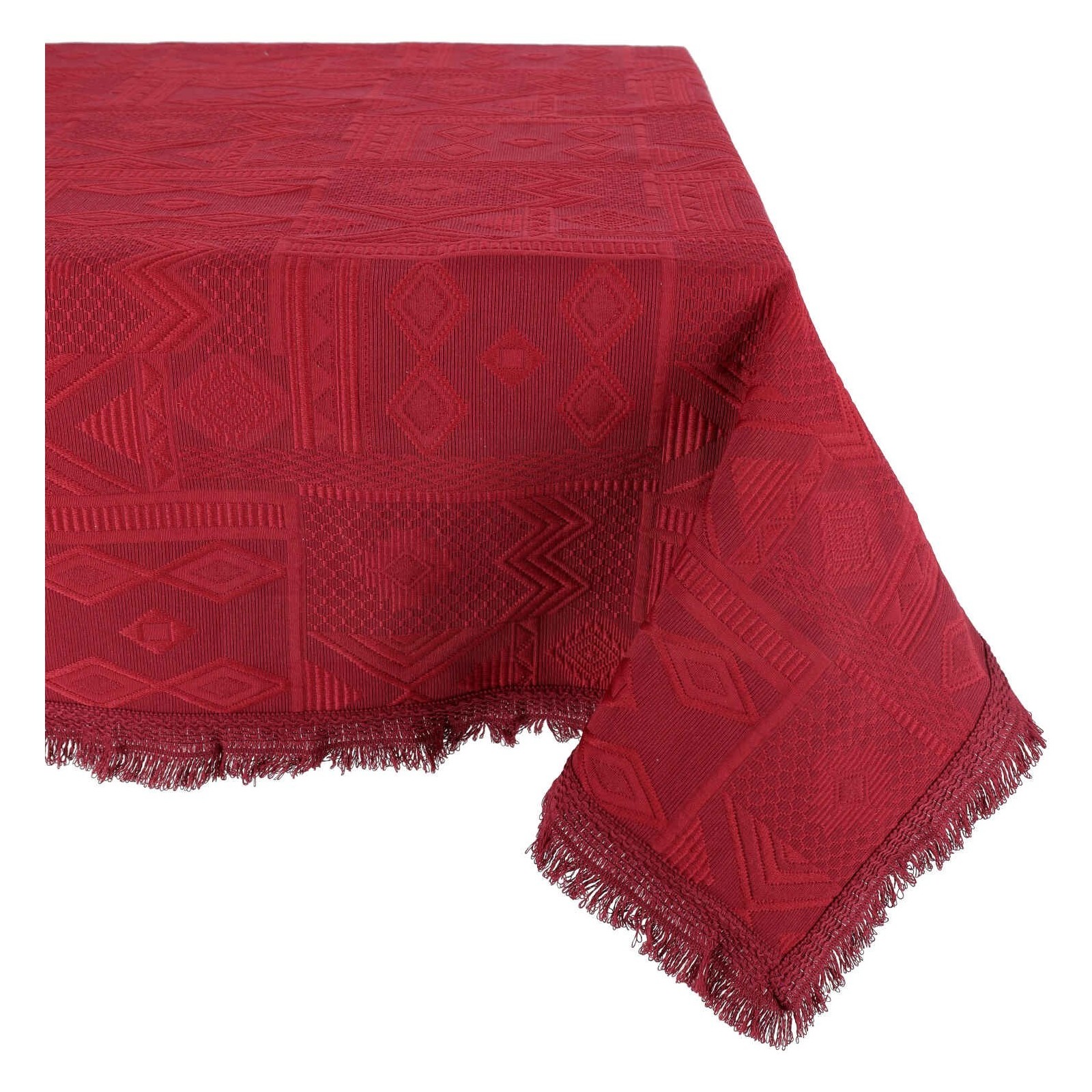 El patrón geométrico con un atractivo étnico se ve realzado por un acabado de flecos en todos los lados.