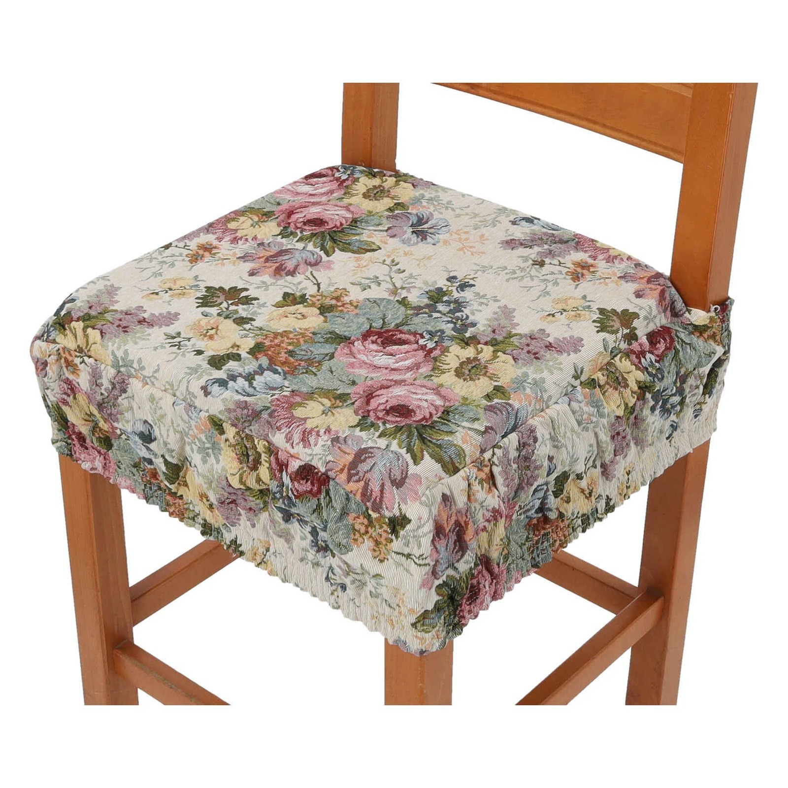 Un coussin saupoudré de bouquets de fleurs colorées sur un fond crème qui représente pleinement le style classique intemporel, une touche de style gracieux et pratique pour embellir vos chaises..