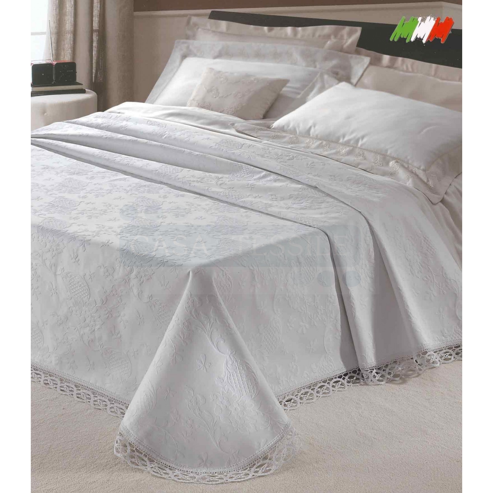 Un classique intemporel, blanc, lumineux et avec un motif en relief sur ton qui découle du traitement particulier du tissu de brocart.