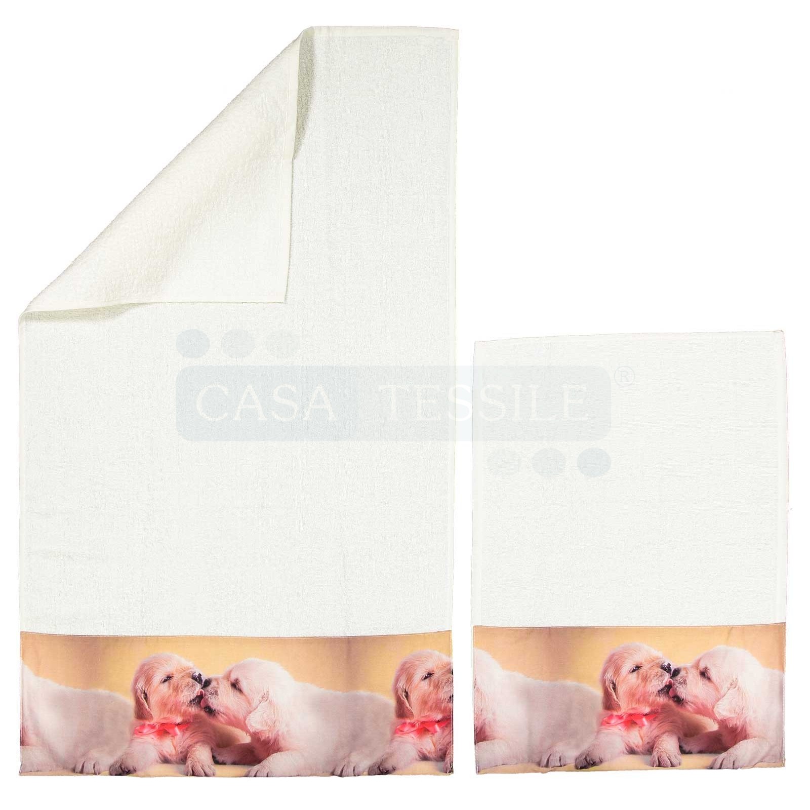 Chiots et fleurs: Serviettes éponge en coton avec volant imprimé..