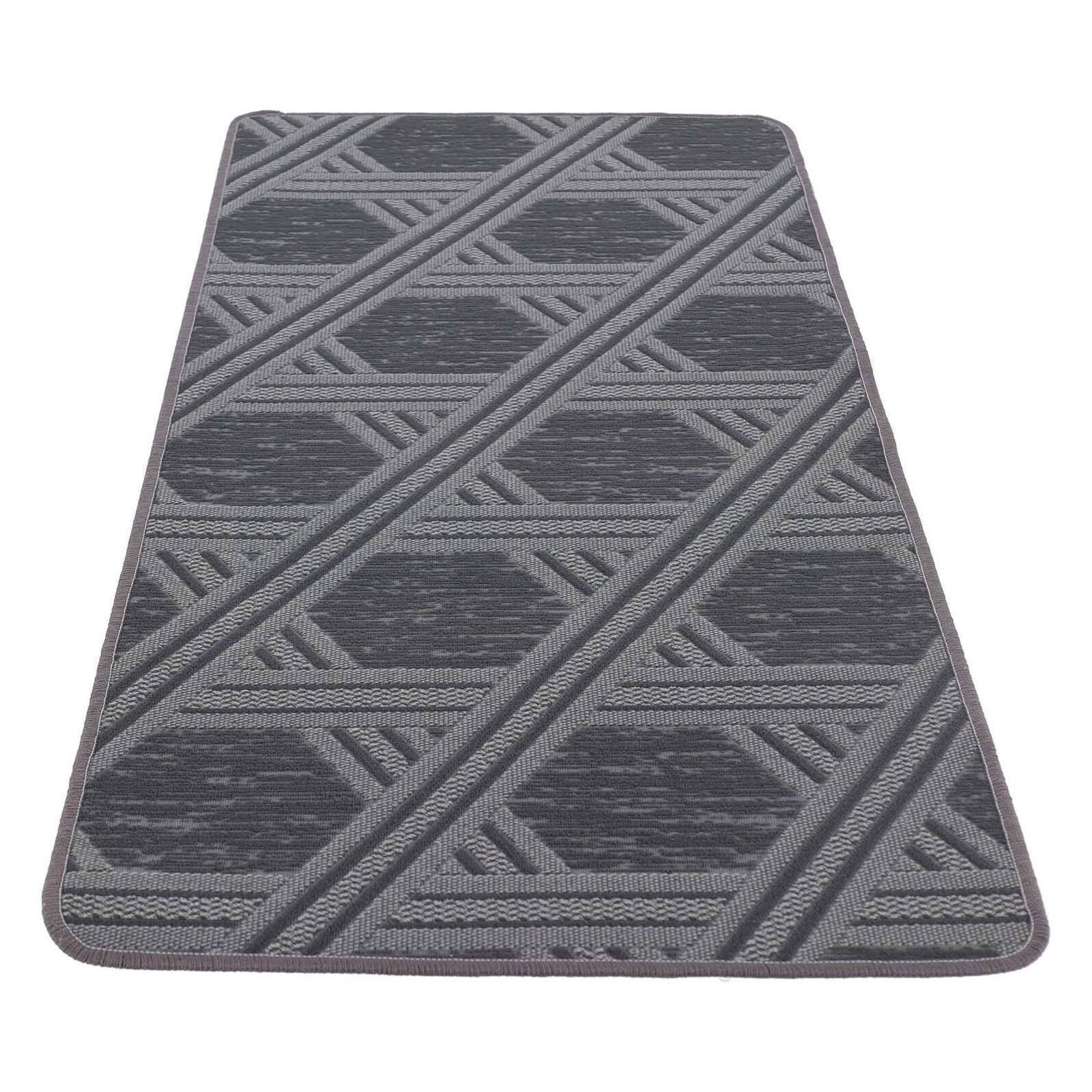 Un tapis antidérapant pratique dans des tons de gris et de motifs géométriques, une voie aux couleurs durables grâce au traitement du jersey qui crée le design de tissage, qui n’est donc pas imprimé, et la brillance des couleurs ne s’estompera pas d’un lavage à l’autre..