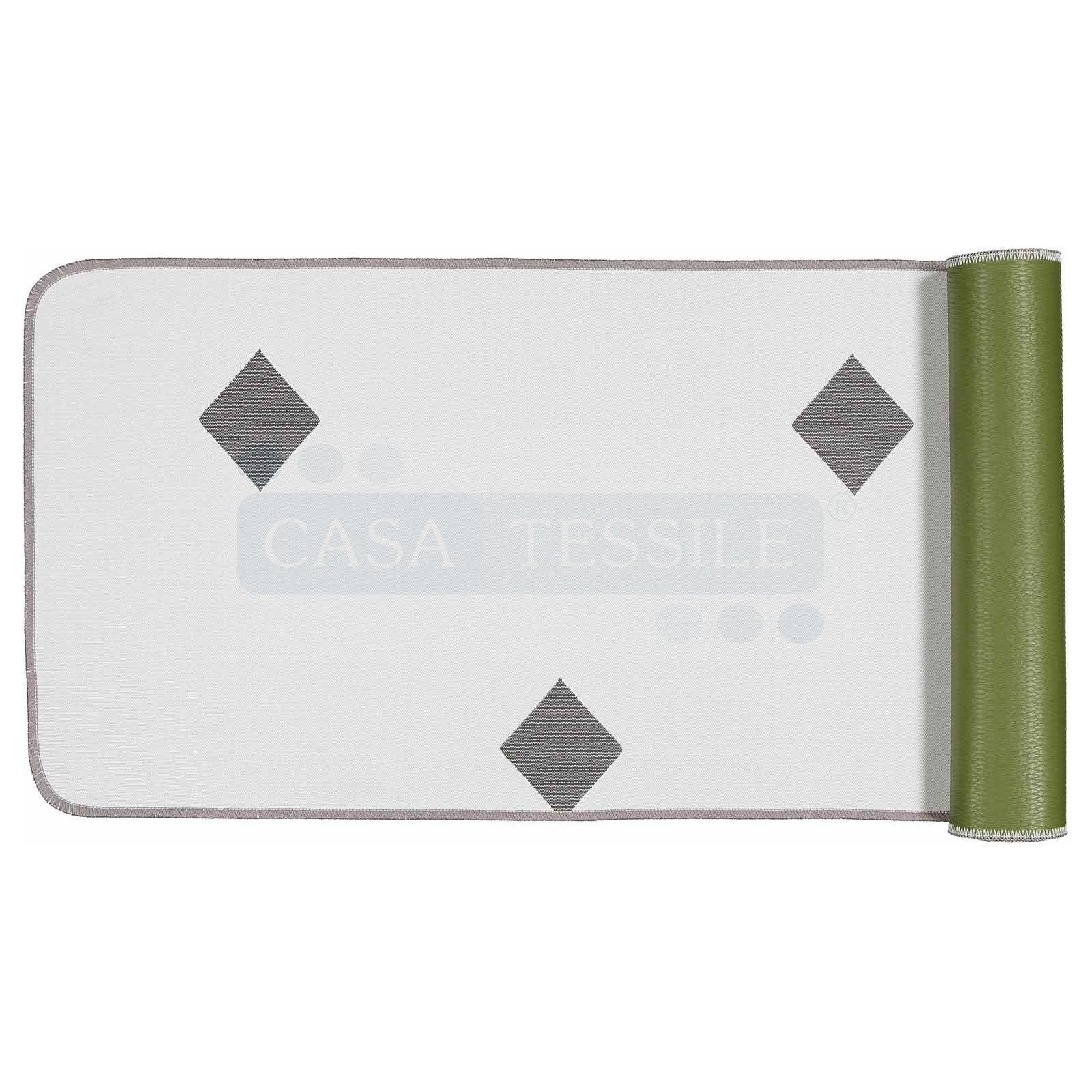 Una base chiara su cui appaiono a cadenza regolare e in posizione sfalsata semplici rombi scuri, una mano liscia pratica e comoda che ti permetterà di pulire con la scopa garantendoti comunque assorbenza..