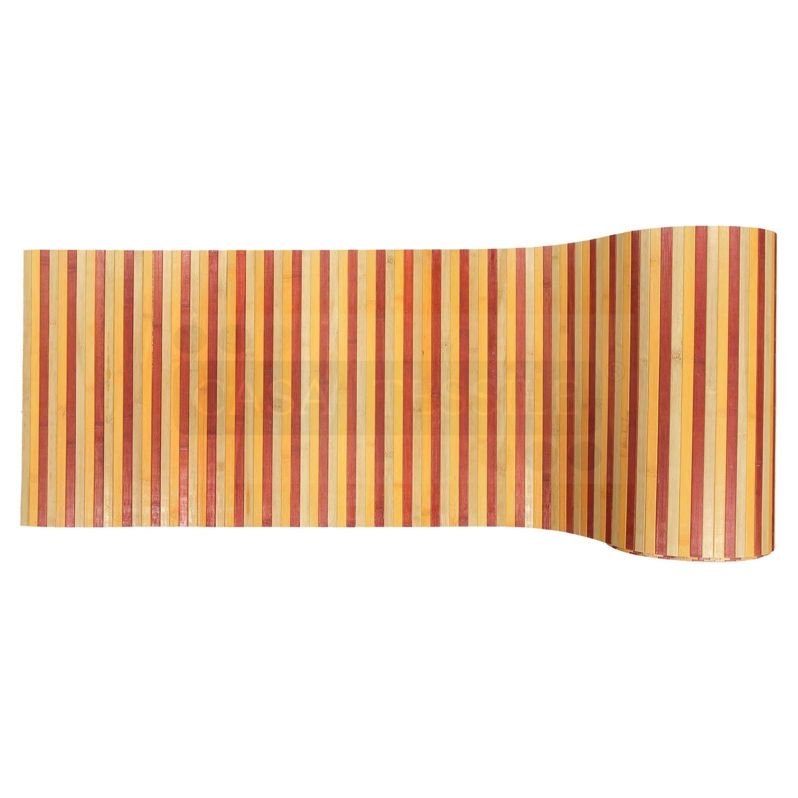 Una passatoia creata infatti con listarelle di bamboo naturale di 15 mm. circa di larghezza per una altezza di 50 cm. accoppiate ad un fondo gommato che permette di tenerle unite e allo stesso tempo dare fermezza alla corsia..